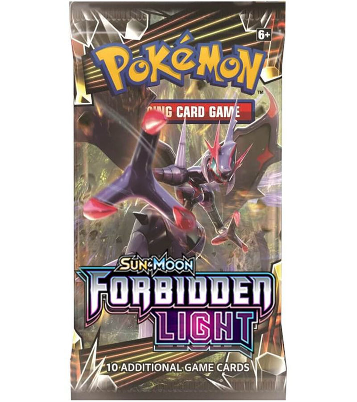 Taking the Pokémon world by surprise, Necrozma has absorbed a Legendary Pokémon and taken on a new form as Ultra Necrozma-GX! Other Pokémon gather to welcome this new light...or to resist it. Lucario-GX, Greninja-GX, Zygarde-GX, Yveltal-GX, Naganadel-GX, even Volcanion and the majestic Arceus must choose a side. Discover awesome Pokémon and mysterious treasures in the Pokémon TCG: Sun & Moon - Forbidden Light expansion!